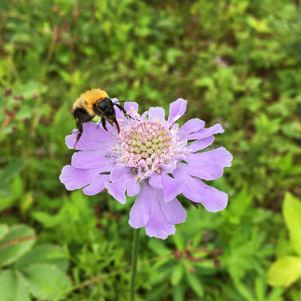 タカネマツムシソウが一輪開花。早速お客さんが。