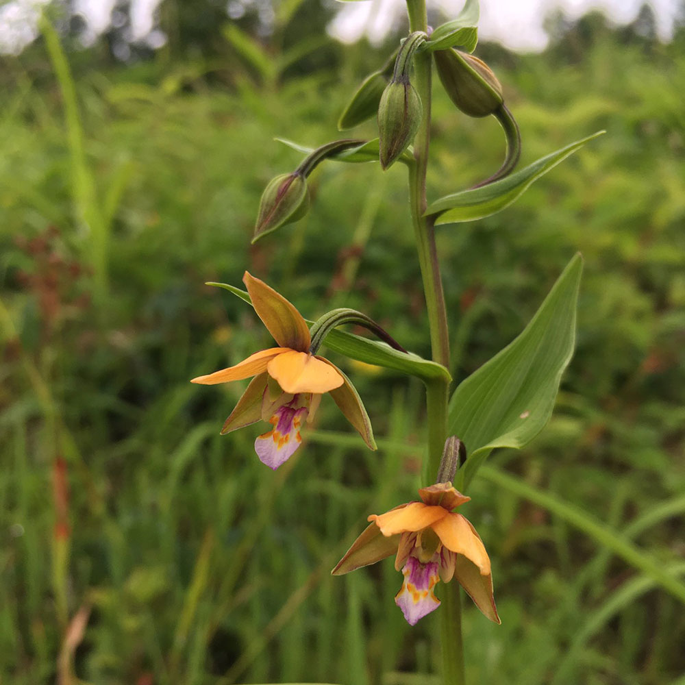 カキランが咲き始めました。自然繁殖して、ところどころに生えています。