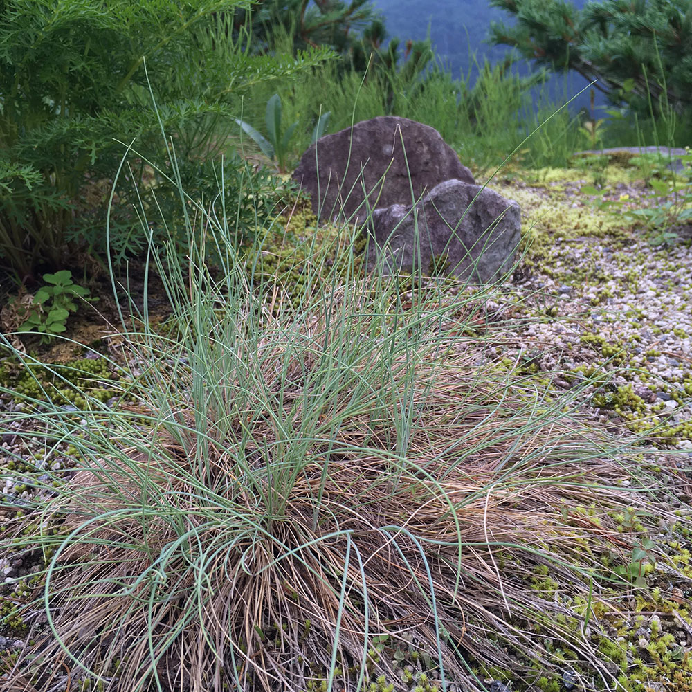青白く寂しい葉はヤマオオウシノケグサ。 希少なイネ科の遺存種です。