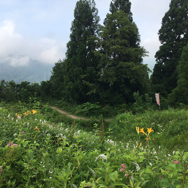 純白のササユリは、お花畑への直登コース沿いに咲いています。