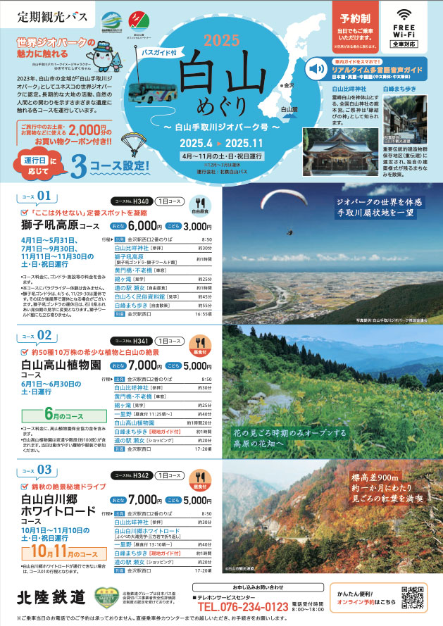 『白山めぐり 白山手取川ジオパーク号』のご案内